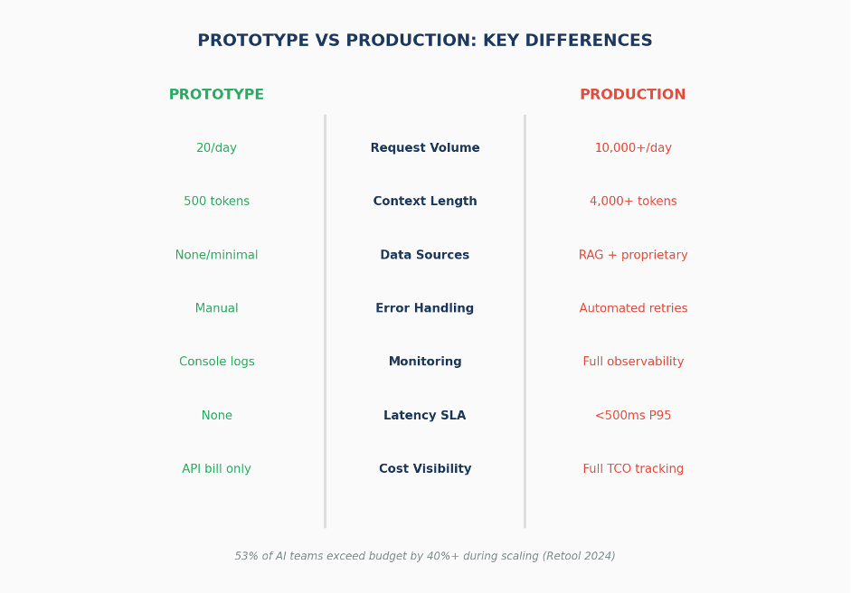 According to MetaCTO, “bill shock” is the most common problem when teams move from prototype to production. Costs that were invisible early on start to add up quickly.