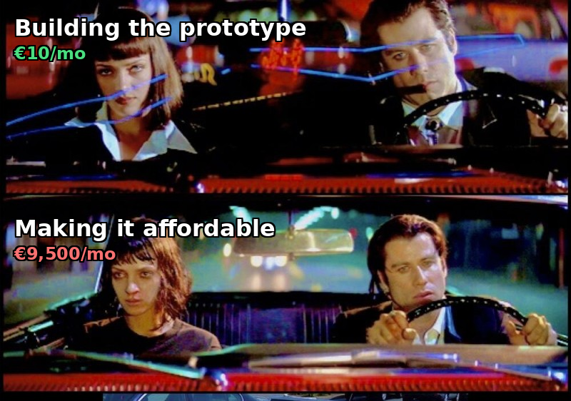 Teams routinely underestimate how costs multiply from prototype to production. A system that costs €10/month in testing can reach €9,500/month at scale—not because anything went wrong, but because pilot economics never reflected reality. The demo was always a lie.